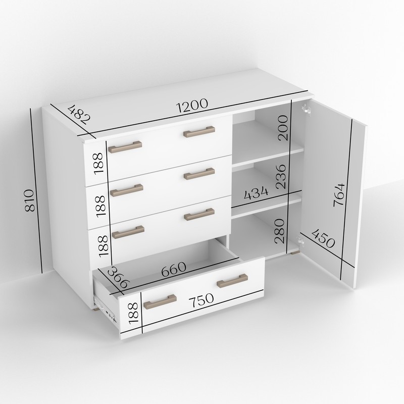 Комод ТКБ-365.4 -чудово поєднує стильний вигляд,місткість і практичність,доповнюючи будь-який інтерєр.