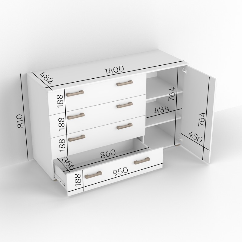 - Продумана конструкція 4 місткі шухляди-ідеальні для зберігання одягу,білизни та аксесуарів.