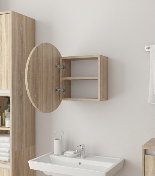 Кругле дзеркало з шафкою М-25, 50 см Дуб Сонома