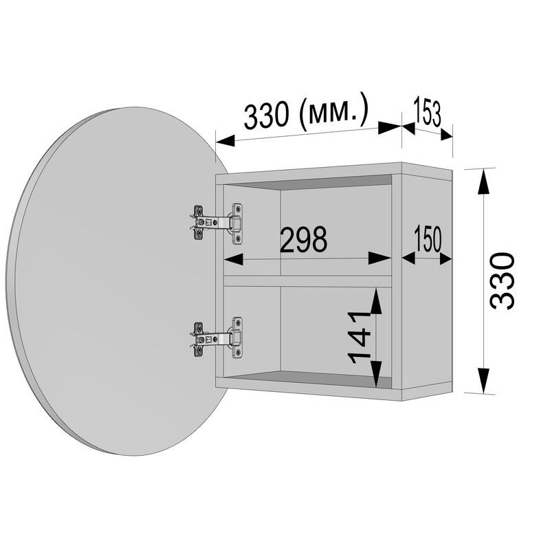 Кругле дзеркало з шафкою М-25, 50 см Бетон