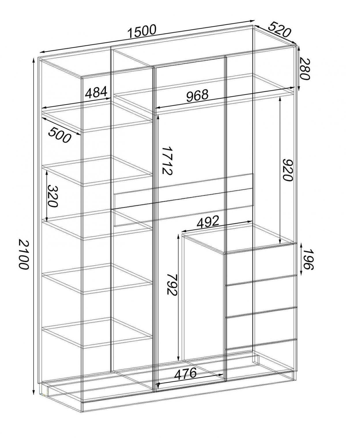 Шафа Крістал 2, Дуб Конкордія, 1500х520х2100 foto 2