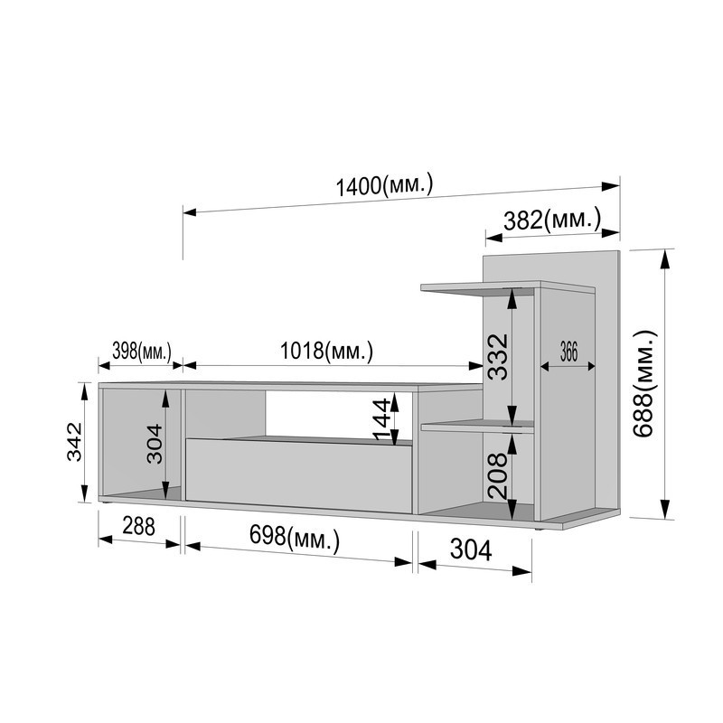 Вона обладнана відкритими нішами додаткових телевізійних пристроїв.